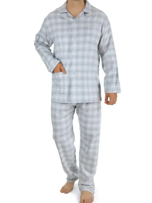 Der typische NOVILA Vollzwirn Flanell beeindruckt durch seine voluminöse Haptik und den einzigartig wärmenden und wohligen Tragekomfort. Auch der Pyjama Max profitiert von dieser edlen Baumwollware in erstklassiger Verarbeitung. Die gerade geschnittene Hose lässt sich mittels zweier Knöpfe im NOVILA Softbund öffnen und ist außerdem mit einem Eingriff versehen. Das Reversoberteil besitzt zwei Taschen.