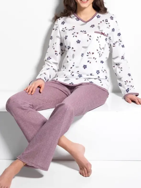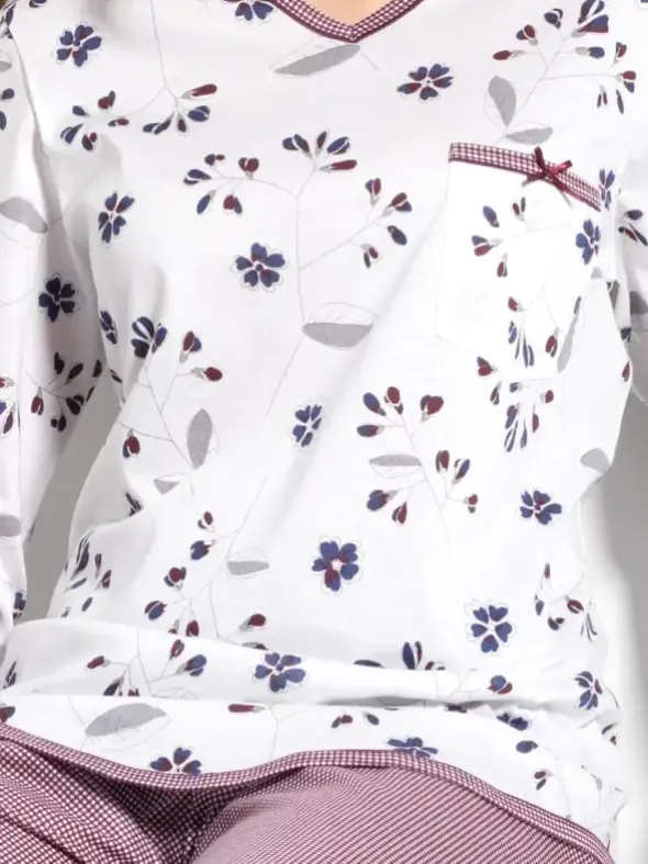Mit dem ansprechenden Mix aus grafischen Blüten-Print und sportlichem Karo-Muster wird dieser Damen-Pyjama zum modischen Must-Have. Neben dem tollen Mustermix überzeugt auch der modische Farbmix – dunkles Blau, zartes Creme und aufregendes Bordeaux harmonieren perfekt. Erstklassig ist auch die hochwertige Qualität der verwendeten Rohstoffe – 100% Bio Cotton aus dem Max Havelaar Programm wurden mit viel Liebe zum Detail und Know How verarbeitet. Alles für Ihren perfekten Schlaf.