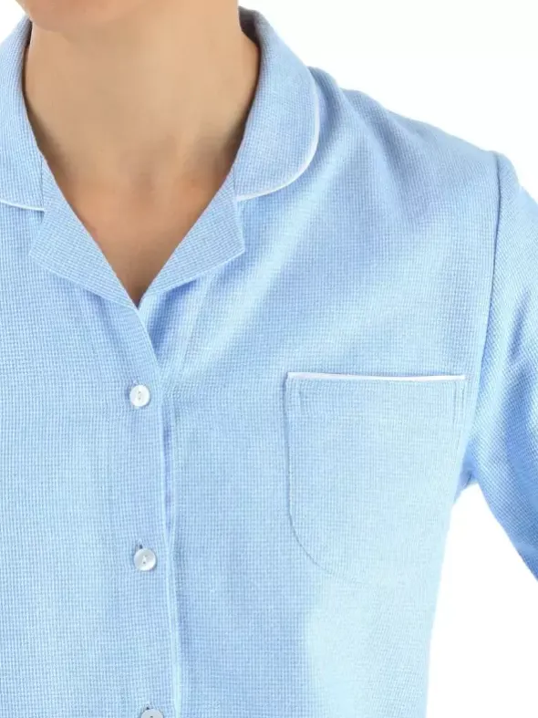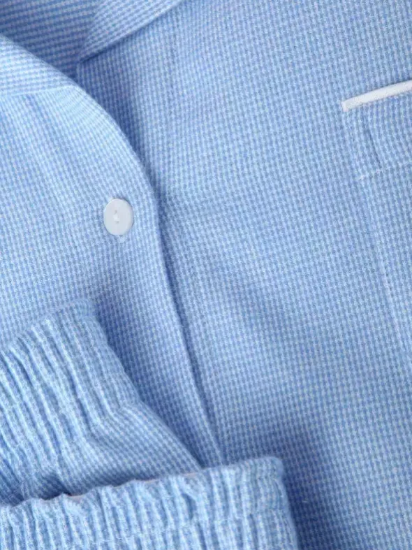 In kuschelig weichem Vollzwirn-Flanell präsentiert NOVILA den beliebten Pyjama Petra, erhältlich in fein kariertem Hellblau oder Flamingo. Der dicht gewebte und flauschig geraute Stoff begleitet Sie zuverlässig durch kältere Nächte. Der patentierte NOVILA Softbund mit Tunnelzug und die Seitennahttaschen der geraden Hose sorgen für praktischen Komfort. Das durchgeknöpfte Oberteil mit aufgesetzter Brusttasche und rundem Reverskragen sorgt für einen stilvollen Auftritt. Gehen Sie keine Kompromisse ein, wenn es um Ihr Wohlbefinden geht und entscheiden Sie sich für mit diesem Zweiteiler für eine exquisite Verarbeitung, ausgewählte Rohstoffe und höchsten Tragekomfort.