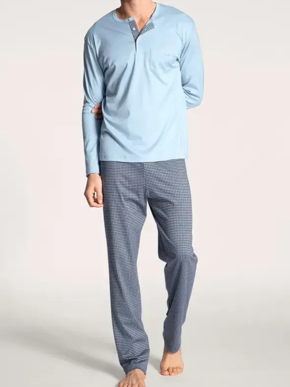 Herren-Pyjama mit Knopfleiste von CALIDA aus der Serie RELAX CHOICE mit modischer Musterung! Die Interlock-Qualität aus reiner Supima®-Baumwolle überzeugt mit einer schönen, glatten Oberfläche und viel Tragekomfort.