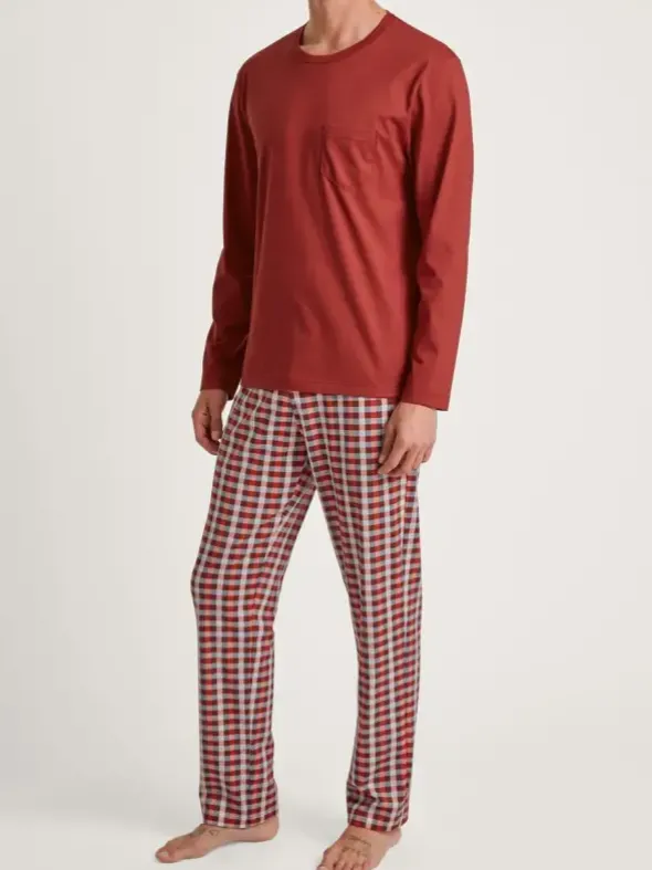 Der Relax Imprint Pyjama von CALIDA überzeugt mit weicher Baumwolle in elastischer Single Jersey-Qualität. Die lockere Passform und das hautfreundliche, atmungsaktive Material sorgen für ein angenehmes Tragegefühl. Das Oberteil ist mit einer praktischen aufgesetzten Brusttasche ausgestattet, während die Hose einen stoffbezogenen Gummibund für zusätzlichen Komfort bietet.