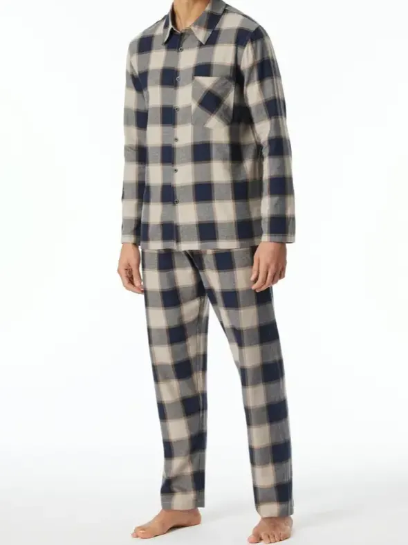 Dieser lange Herrenpyjama aus der SCHIESSER Serie „Selected Premium Warming“ ist ideal für kalte Nächte. Das winterliche Karomuster kombiniert mit einer modernen und lässigen Schnittform sorgt für einen stilvollen Look. Der Pyjama verfügt über eine praktische Brusttasche und ist aus weicher, warmer Flanell-Qualität gefertigt, die ein angenehmes Tragegefühl bietet. Die hochwertige Verarbeitung sorgt für Behaglichkeit und Komfort. Perfekt für alle, die auch in der Nacht nicht auf Stil verzichten wollen.