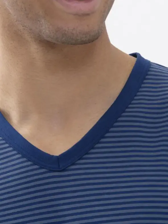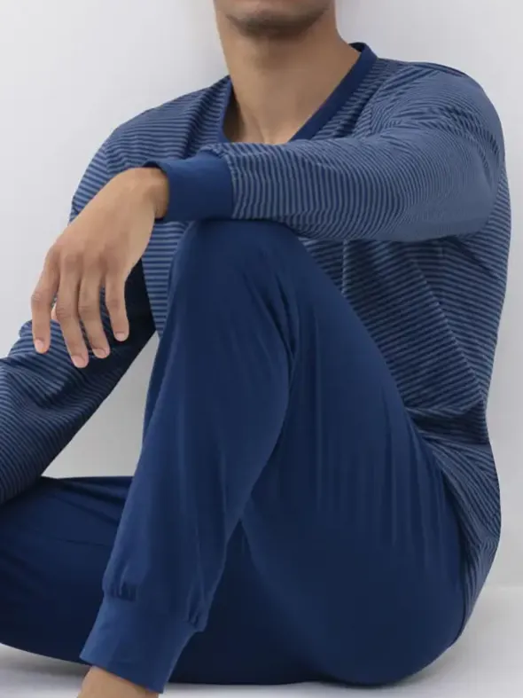 Der lange Schlafanzug Cardwell überzeugt in gewohnt hoher mey-Qualität. Der Zweiteiler aus gestreiftem V-Shirt und unifarbener Hose verspricht absolute Gemütlichkeit, gepaart mit einem natürlichen Tragegefühl. Pflegeleicht dank 100% hochwertiger Baumwolle.