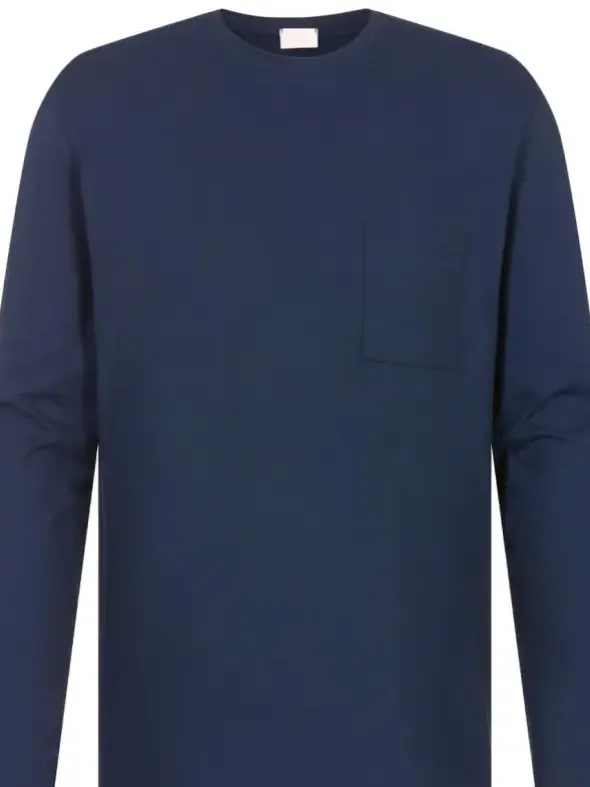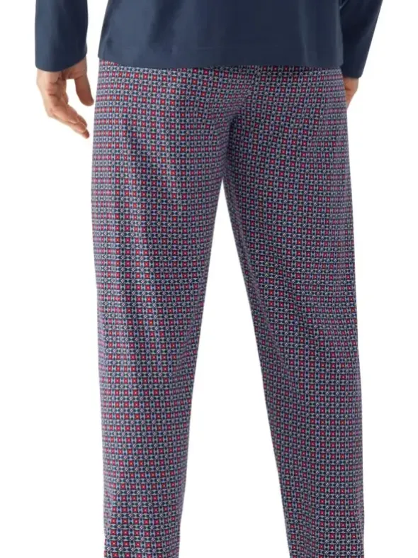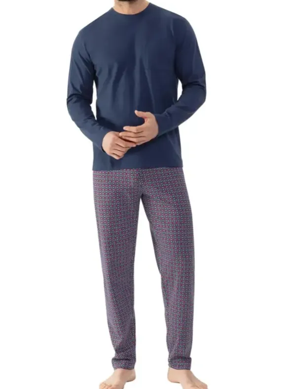 Dieser zweiteilige lange Schlafanzug aus der Serie „Red Tile“ bietet eine lockere Passform und ein natürliches Tragegefühl dank 100% Baumwolle. Das Set umfasst ein Langarm-Shirt mit Rundhalsausschnitt und Brusttasche sowie eine lange Hose mit minimalistischem Print und Komfortbund. Dieser Anzug vereint Stil und Bequemlichkeit und ist ideal für gemütliche Nächte.