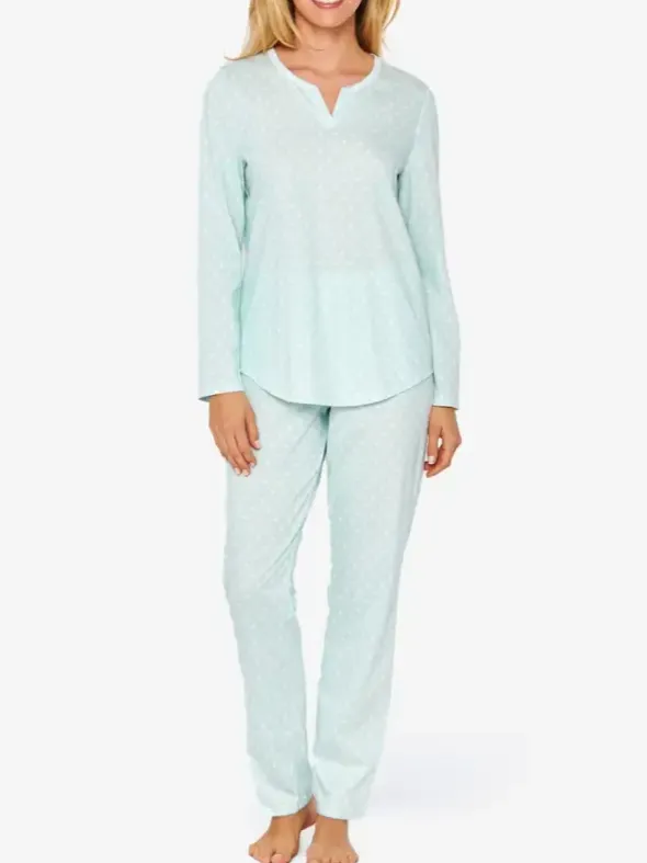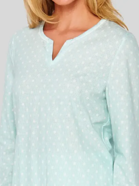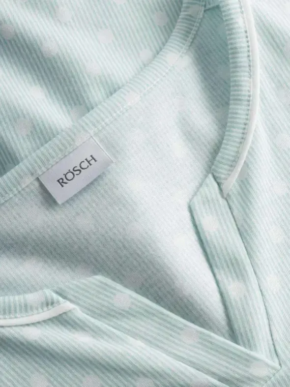 Der modische Pyjama mit Tunika-Ausschnitt von Rösch besticht in einem anschmiegsamen Baumwoll-Jersey. Der verspielte Mustermix mit Punkten und Streifen bringt frischen Wind in ihren Kleiderschrank und sorgt für einen modernen Look. Einen angenehmen Tragekomfort verspricht der abgerundete Saum am Oberteil und die gerade geschnittene Hose mit Gummibund.