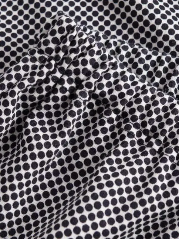 Dieser stilvolle Damenpyjama von Rösch ist aus einem hochwertigem Baumwoll-Interlock gefertigt und verspricht einen angenehmen Tragekomfort. Das Langarmshirt mit Rundhalsausschnitt ist mit einer schmalen, hochwertig gearbeiteten Knopfleiste gefertigt. Der abgerundete Saum fasst den modischen Punktedruck der Hose wunderbar auf. Diese ist gerade geschnitten und mit einem eingearbeiteten Gummibund versehen.