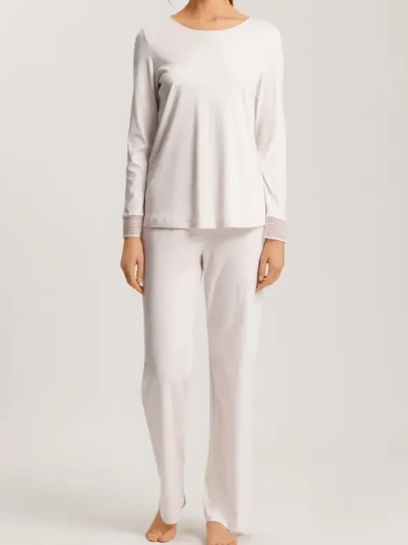 Dieser klassisch-zeitlose Damen Pyjama aus der HANRO Serie Sophie besteht aus hochwertiger Baumwolle und bietet höchsten Tragekomfort. Das Oberteil ist mit zarter Spitze am Ärmelsaum verziert, was dem Pyjama eine elegante Note verleiht. Die schlichte Schlafhose hat einen bequemen Bund und sorgt für Wohlfühl-Momente. Produziert in Österreich, bietet dieser Pyjama perfekte Nachtwäsche für kuschelige und wohltuende Pausen zur Regeneration.