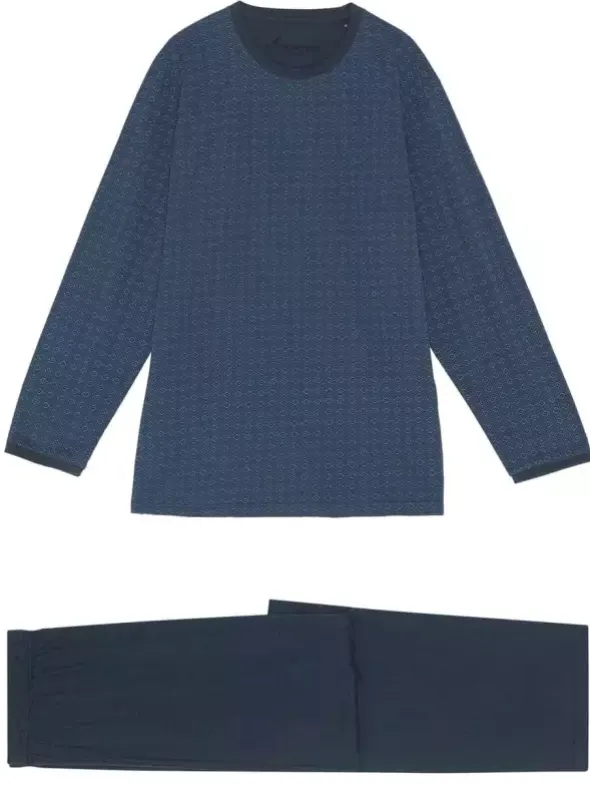 Ein komfortabler und zugleich umweltbewusst gefertigter Nachtwäschelook erwartet Sie mit diesem Herrenpyjama aus weichem Single-Jersey. Das stilvoll gemusterte Oberteil ist mit bequemen Rippdetails am Hals-und Armausschnitt gefertigt. Die unifarbene Hose überzeugt mit einem angenehmen Gummibund. Ein perfekter Begleiter für erholsame Stunden.