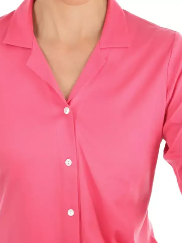Der klassisch elegante Pyjama Thery besticht in dieser Ausführung in hochwertigem Feininterlock Jersey aus 100% Baumwolle. Der dichte und gleichzeitig anschmiegsame Stoff verspricht einen hohen Tragekomfort für kompromisslose Gemütlichkeit. Das durchgeknöpfte Oberteil mit Reverskragen ergänzt sich optisch perfekt mit der gerade geschnittenen Hose. Lassen Sie sich verzaubern von der exquisiten Verarbeitung dieses Nachtwäsche Bascis von NOVILA. Erhältlich in den Farben Weiß, Blau und Flamingo.