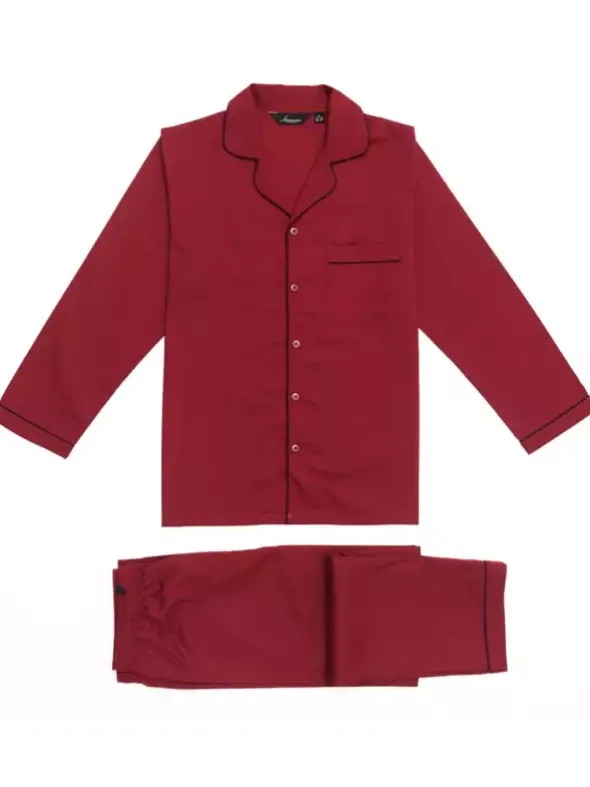 Klassischer Herrenpyjama Tokyo aus glattgewebtem Popeline. Das hochwertige Material besteht zu 100% aus GOTS-zertifizierter Bio-Baumwolle und wird umweltbewusst und sozial verantwortlich verarbeitet. Die edlen Paspelierungen und der abgerundete Reverskragen schaffen einen stilvollen Look. Gönnen Sie sich diesen meisterhaft gefertigten Nachtwäschelook für Ihre kostbaren Momente der Entspannung.