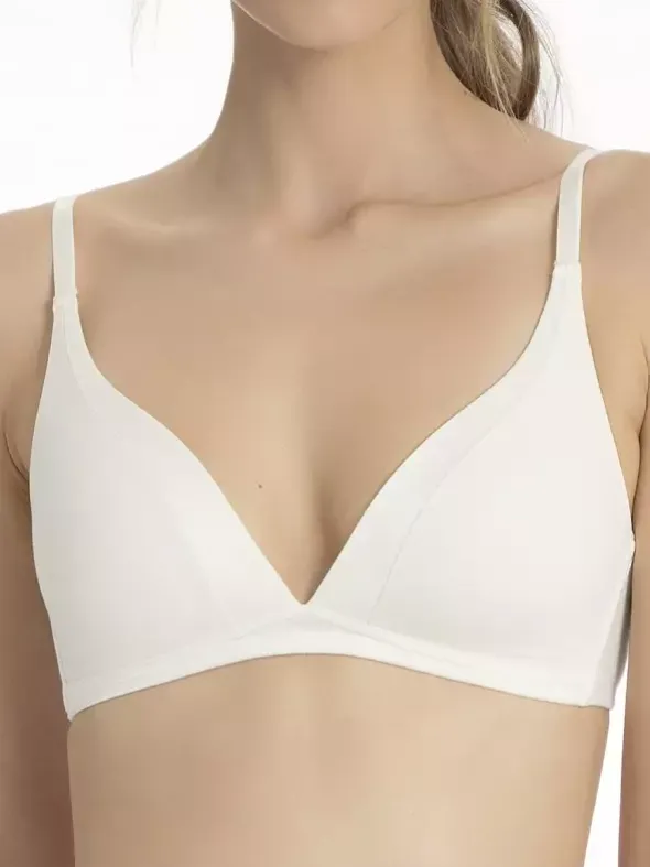 Aus der CALIDA Damenlingerie Serie Cate, ein eleganter Triangel BH ohne Bügel für einen eleganten Auftritt. Dieser BH hat gemoldete Cups. Moderne Schnittführung verbunden mit erstklassiger Verarbeitung und ein weiches SUPIMA Baumwolle Gewebe in Single Jersey mit feinem Satin machen diesen Soft Bra nicht nur in seiner Optik unfehlbar. Kombinieren Sie den passenden Slip aus der Cate Serie passend dazu.