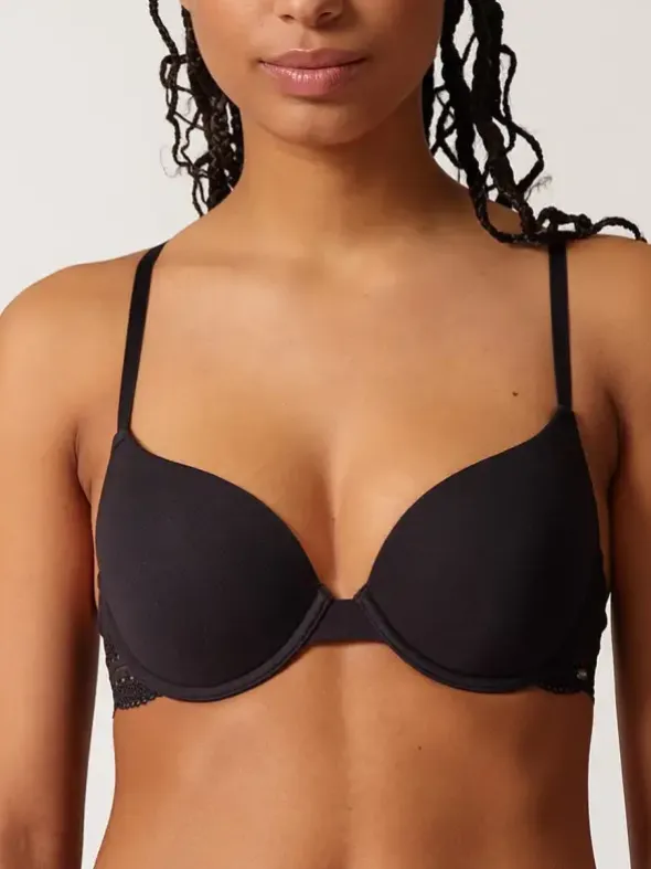 Dieser gepolsterte Schalen-BH mit Bügel vereint femininen Stil und alltagstauglichen Komfort. Die mit Baumwoll-Stretch überzogenen Schalen sorgen für ein angenehmes Tragegefühl und eine natürliche Formgebung. Die feine Spitze an der Unterbrust verleiht dem BH eine elegante Note. Verstellbare Träger und ein praktischer Hakenverschluss am Rücken garantieren eine individuelle Passform. Ob im Büro, beim Stadtbummel oder für besondere Anlässe – dieser BH ist ein vielseitiges Must-have und lässt sich perfekt mit einem passenden Slip der Serie kombinieren.