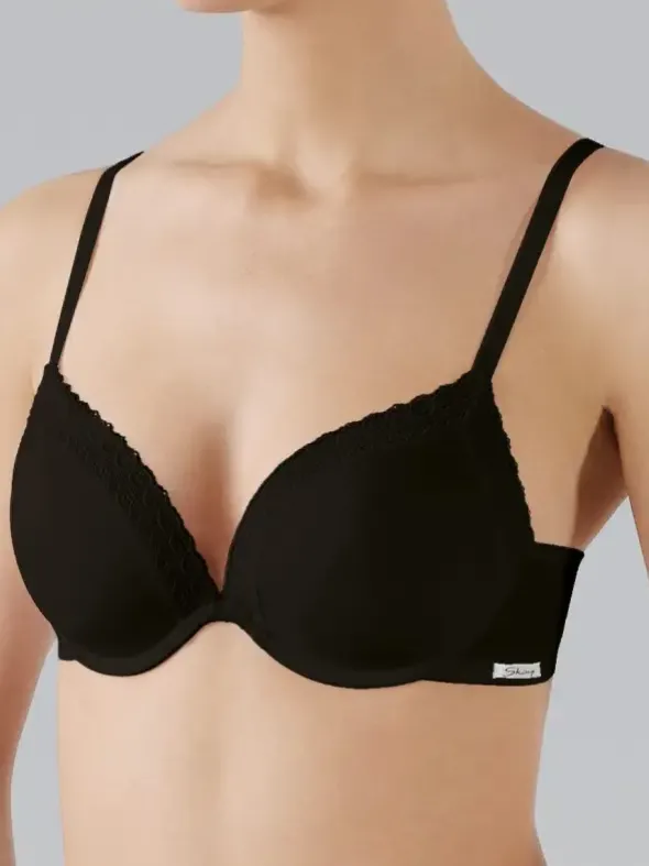 Aus der neuen Skiny Serie Nostalgia ein sehr geschmeidiger Schalen BH mit eingearbeiteten dezenten Bügeln und schmalen Trägern, die wahlweise auch über Kreuz getragen werden können. Die Cupoberkante ist mit feiner Spitzenborte belegt. Sein weiches Material, eine feine Mikrofaser mit Elasthananteil sorgt für bequemen Tragekomfort. Klassischer Skiny BH für den perfekten Look.