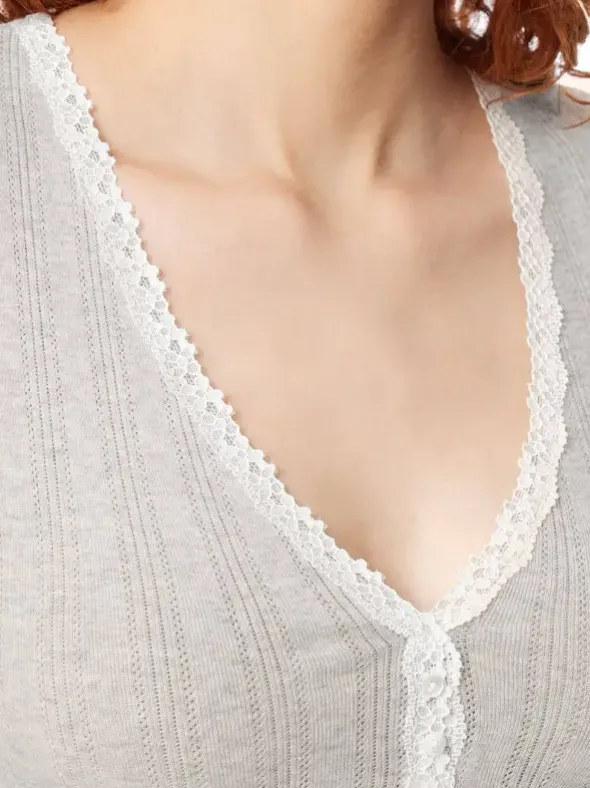 Die Liebliche! Die Revival Wäscheserie Agathe ist seit jeher unser femininer Klassiker. Charakteristisch für die Shirts, Chemisettes oder Pants sind die geblümte Bandspitze, echte Perlmuttknöpfe und der feingerippte Ajouré-Stoff. So hübsch, dass sich die Oberteile auch als Oberbekleidung gut machen. So geht eleganter Retro!