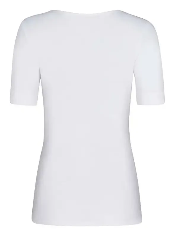 Dieses T-Shirt für Damen passt immer und ist ideal als Unterhemd oder Oberteil zu Jeans und Rock. 100 % Baumwolle in hochwertigem Feinripp sorgen für ein angenehmes Tragegefühl. Auch der Verzicht von Seitennähten trägt zum Wohlgefühl bei. Optisches Highlight ist die feine Stickerei am V-Ausschnitt.