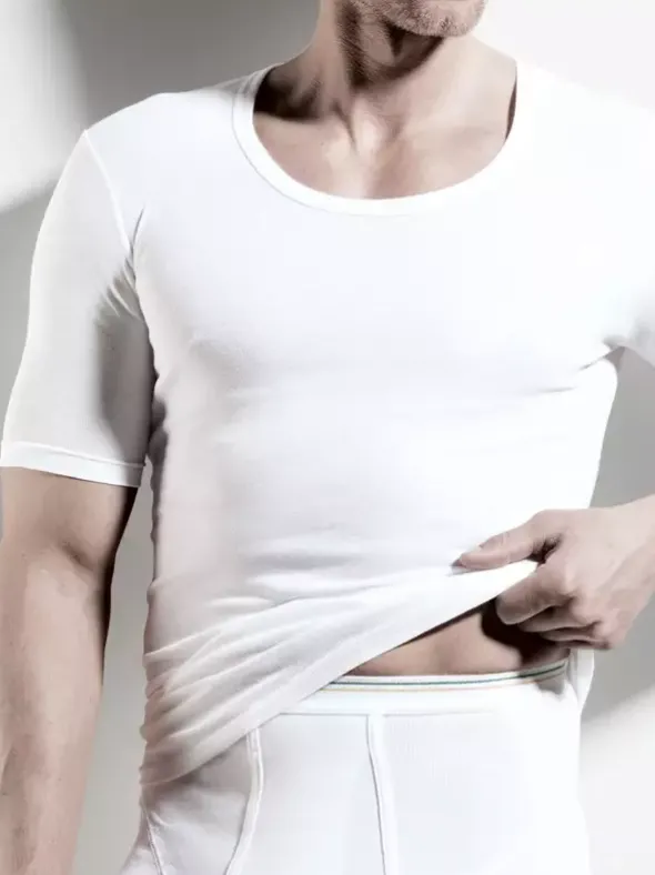 ISA Bodywear – hochwertige Herrenunterwäsche aus der Schweiz – Kurzarmshirt mit Rundhalsausschnitt gefertigt aus 100% Baumwolle. Bequeme Passform, klassisches Design und ein angenehmes Tragegefühl zeichnen dieses T-Shirt besonders aus.