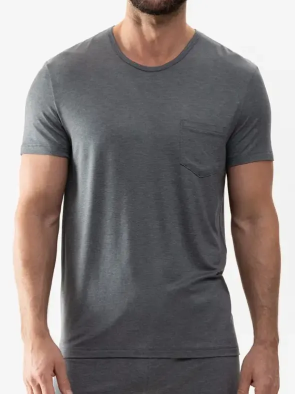 Mey Club Jefferson die Homewear Serie für Herren – Verwöhnen Sie sich mit diesem dunkelblauen Kurzarm Shirt mit Rundhals. Das Shirt ist aus weichem Modal in Single Jersey Gewebe gefertigt und zeichnet sich durch behaglichen Tragekomfort aus. Auf der linken Brust ist das Shirt mit einer dezenten Brusttasche dekoriert.