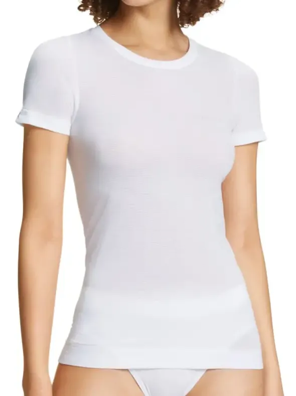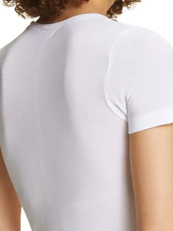 Das Damen-T-Shirt Ultralight Cool von FALKE ist die ideale Funktionsunterwäsche für anspruchsvolle Workouts. Entwickelt, um den Körper bei warmen bis sehr warmen Temperaturen kühl zu halten, ermöglicht es maximale Energieeffizienz beim Sport. Das recycelte Polyamid leitet Feuchtigkeit zuverlässig vom Körper weg, trocknet schnell und sorgt für ein dauerhaft kühles und trockenes Tragegefühl. Dank der anatomischen Passform und der nahtlosen Stricktechnik passt sich das T-Shirt perfekt an den Körper an und bietet uneingeschränkte Bewegungsfreiheit. Mit einem Gewicht von unter 50 Gramm ist es extrem leicht und somit ideal für Aktivitäten mit geringer bis hoher Intensität. Dieses T-Shirt vereint Nachhaltigkeit, Funktionalität und Komfort – die bewusste Wahl für aktive Frauen.