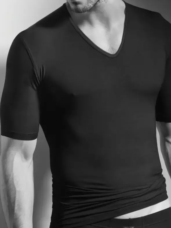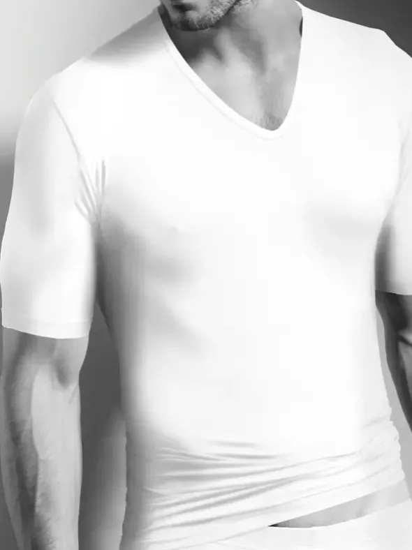 ISA Bodywear Swissline Light Mix – hochwertige Herrenwäsche aus der Schweiz – ein sportliches V Ausschnitt – Kurzarmshirt, gefertigt aus Baumwolle in Swiss Cotton Premium Qualität mit geringem Elasthananteil. Wahlweise in weiß oder schwarz erhältlich. Bequeme Passform, klassisches Design und ein angenehmes Tragegefühl zeichnen dieses Wäschestück aus.