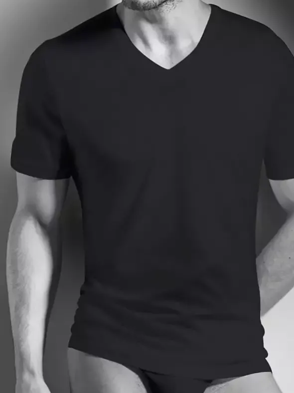 ISA Bodywear Swissline Pure – hochwertige Herrenunterwäsche aus der Schweiz – ein hochwertiges V – Shirt Unterhemd mit Kurzarm, gefertigt aus Baumwolle in Swiss Cotton Premium Qualität. Wahlweise in weiß oder schwarz erhältlich. Bequeme Passform, sportive Streifenstruktur und angenehmes Tragegefühl zeichnen dieses Wäschestück aus.