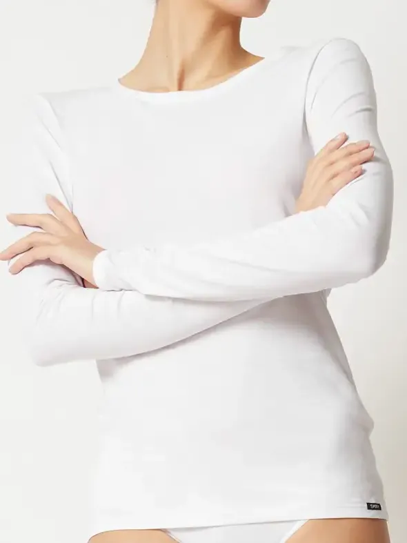 Körpernah geschnittenes Langarmshirt mit klassischem Rundhalsauschnitt. Das Basic-Shirt ist dank der flachen Kantenverarbeitung auch ideal zum Drunterziehen geeignet. Das Material aus leichter Baumwolle mit einem Hauch Elasthan verspricht einen unbeschwerten Tragekomfort und macht dieses Shirt zum Must-have im Kleiderschrank.