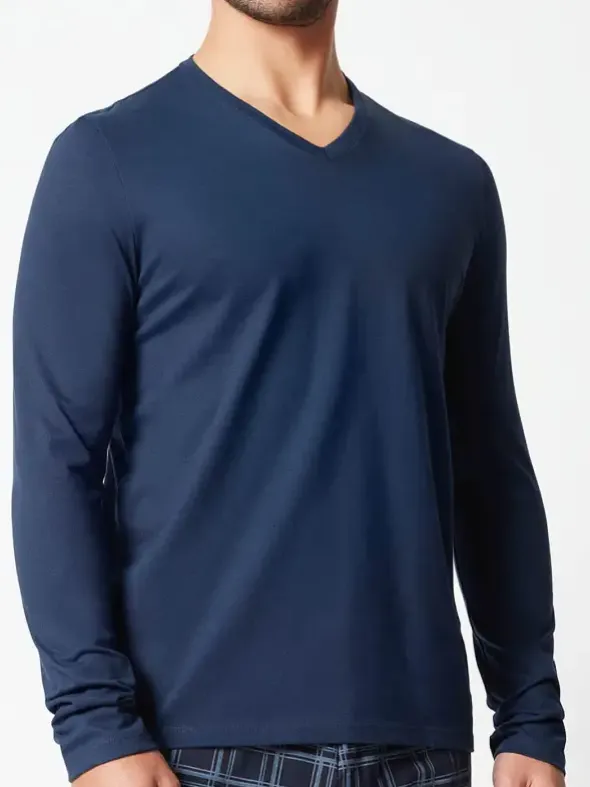 Dieses bequeme Langarmshirt mit V-Ausschnitt will man(n) am liebsten nie wieder ausziehen: Der hochwertige Single Jersey besteht aus 100 % Bio-Baumwolle und fühlt sich dadurch besonders weich an. Das gerade geschnittene Shirt geht angenehm hautnah und ist dabei gut für Körper und Umwelt zugleich.