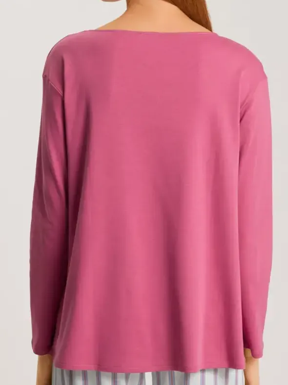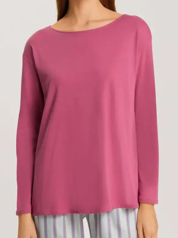 Dieses Langarmshirt aus der HANRO Serie Loie besteht aus 100 % Baumwolle und bietet durch den bequemen Rundhalsausschnitt und den lässigen Schnitt höchsten Tragekomfort. Der weiche, sanft glänzende Interlock-Stoff sorgt für ein besonders angenehmes Tragegefühl auf der Haut. Ideal als hochwertige Nachtwäsche, lässt sich das Shirt auch perfekt als Ready-to-wear Oberteil kombinieren. Die spürbar hohe Qualität ermöglicht wohltuende Pausen zur Regeneration, egal ob zu Hause oder unterwegs.