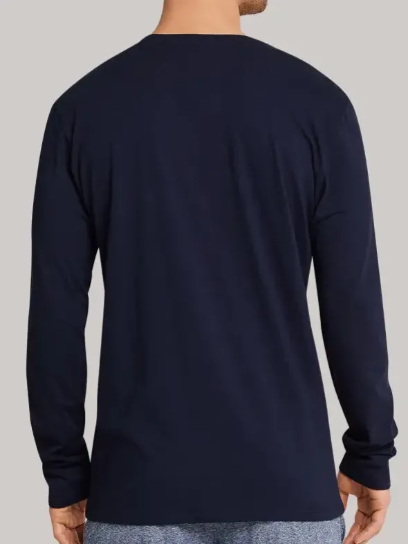 Schiesser Herrenwäsche – aus der Serie Mix & Relax ein klassisches Langarmshirt mit kurzer Knopfleiste und flachen Abschlüssen – gefertigt aus hochwertiger Baumwolle in Single Jersey Gewebe. Der sportive Gesamteindruck und das angenehme Tragegefühl zeichnen dieses Homewear Wäschestück besonders aus.
