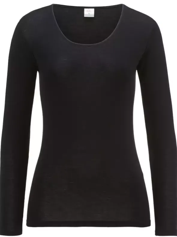 ISA Bodywear Schweizer Damen Unterwäsche – aus der Serie Wool & Silk by ISA ein klassisches und bequemes Shirt Langarm mit Rundhalsauschnitt wahlweise in creme oder schwarz – aus einer feinen und hochwertigen Schurwolle – Seide Qualität, gefertigt im klassischem Schnitt. Das hochwertige Damenunterhemd läßt keine Wünsche offen.
