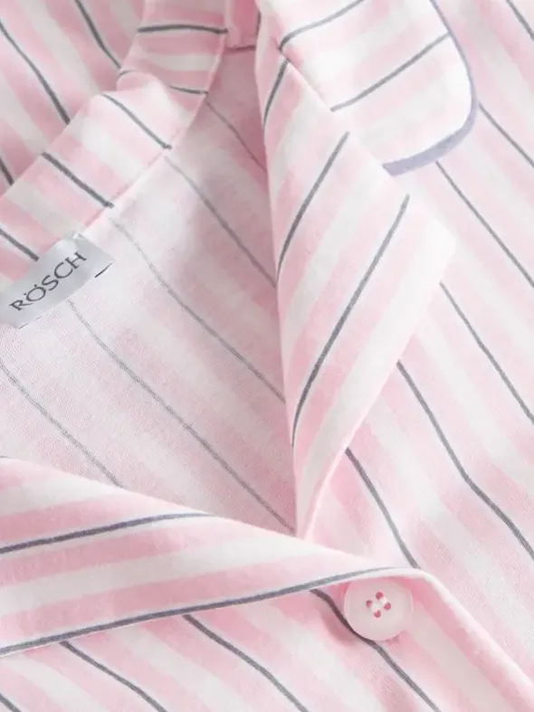 Das Rösch Langarm-Shirt aus 100% Baumwolle vereint klassischen Stil und angenehmen Komfort. Dieses durchgeknöpfte Oberteil mit Reverskragen und dezenter Paspelierung strahlt zeitlose Eleganz aus. Der edle Streifenprint und die leicht taillierte Passform unterstreichen die feminine Silhouette, während der abgerundete Saum und die breiten Manschetten das Design harmonisch abrunden. Perfekt für Damen, die auch in der Freizeit auf Stil setzen, bietet dieses Shirt eine hochwertige Verarbeitung und eine stilvolle Optik.