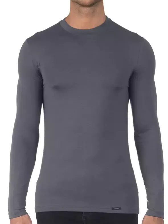 Aus der Serie Modal Stretch Jersey der Luxus Marke Oscalito Unterwäsche für den Mann – klassisches Langarm Shirt mit Stehkragen, wahlweise in weiß, grau oder schwarz, aus feinstem Micromodal mit Elasthananteil und in perfekter Passform gefertigt. Das Shirt ist in hoher Verarbeitungsqualität und in sportlicher Schnittführung gefertigt. Tolles Tragegefühl durch fließendes Single Jersey Gewebe. Ideal als Darunter für den Business Look.