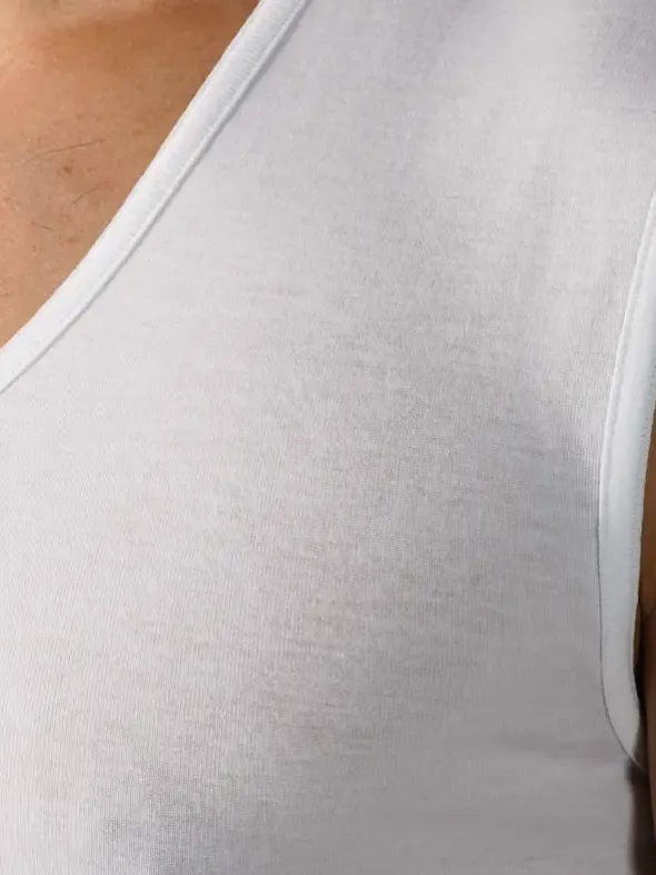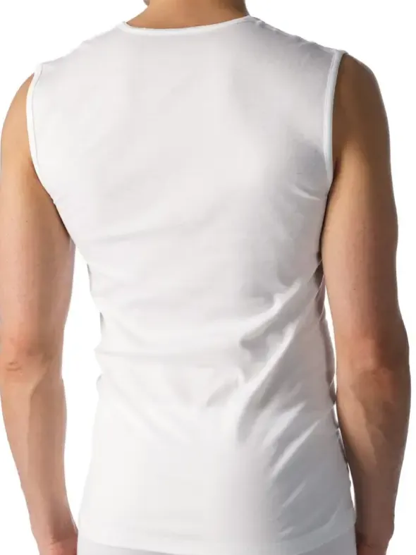 Mey Herren ärmelloses Muscle Shirt – Casual Cotton. Verwöhnen Sie sich mit diesem Wäschestück mit tiefem V-Ausschnitt. Das Shirt, erhältlich in weiß, wird aus einer feinen PIMA Cotton Baumwolle ohne Elasthananteil gefertigt. Die Casual Cotton Serie trägt das „Bluesign Product“ Label für besondere Nachhaltigkeit im gesamten Fertigungsprozess.