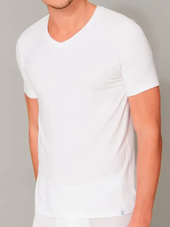 Dieses blauschwarze T-Shirt aus der SCHIESSER-Serie „Long Life Soft“ ist genau das Richtige für Herren, die innovatives, pilling-armes Material in perfekter Passform schätzen. Hochwertiger, elastischer Single Jersey fühlt sich dabei angenehm glatt und weich an auf der Haut und sorgt mit dem ausgeglichenen Micromodal-Anteil für ein optimales Feuchtigkeitsmanagement. Ein langlebiges Shirt mit V-Ausschnitt, das sich sanft jeder Bewegung des Körpers anpasst und dadurch höchsten Tragekomfort gewährt.