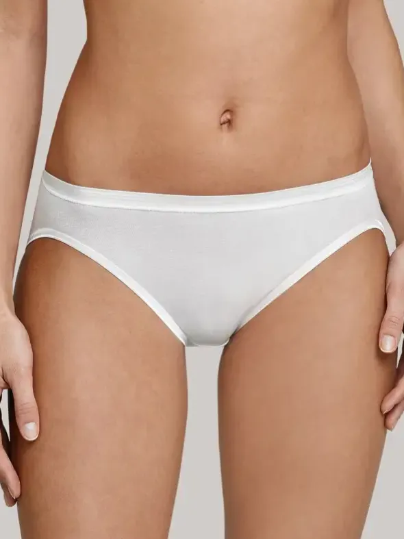 Schiesser Damenunterwäsche Serie Luxury. Hier ein schmal geschnittener Rio Slip aus einer feinen, supergekämmten Mako-Baumwolle in akkurater Verarbeitung für angenehmen Tragekomfort. Das ideale Wäsche Basic für alle Tage.