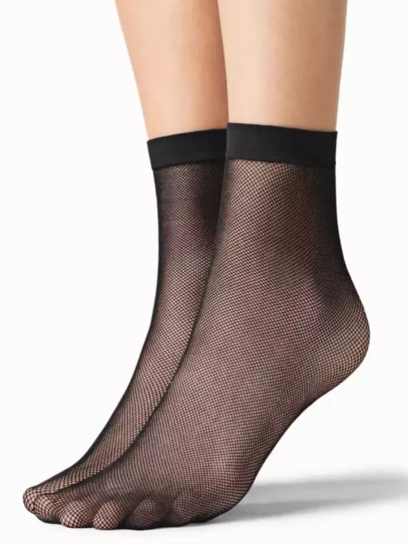 Von Fogal Damensocken aus der Serie 3057 Netlace. Es handelt sich um elegante Socken aus feinem, elastischen Netz. Die Socken beginnen oben mit einem zarten Elastikband als Bordüre und führen das Netz durchgehend bis zu den Fussspitzen. Höchster femininer Look.