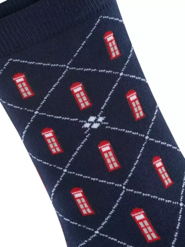 Britisch durch und durch – das sind diese Strümpfe, die das markentypische Argyle-Muster mit den bekanntesten Motiven Englands vereinen. Abgerundet wird die raffinierte Symbiose durch den Einsatz hautschmeichelnder Baumwolle. Ein Style mit Hingucker Potenzial, der on top Tragekomfort verspricht.