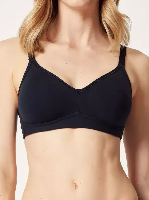 Dieser zeitlos schöne Soft-BH trägt seine Besonderheit im Namen: Seine vorgeformten Cups, die extra weiche Polsterung unter der Brust und die feine Baumwolle machen den Soft-BH ohne Bügel auffallend weich. Die Nahtführung an der Unterbrust gibt eine angenehme Form. Das ist HUBER Komfort hautnah.