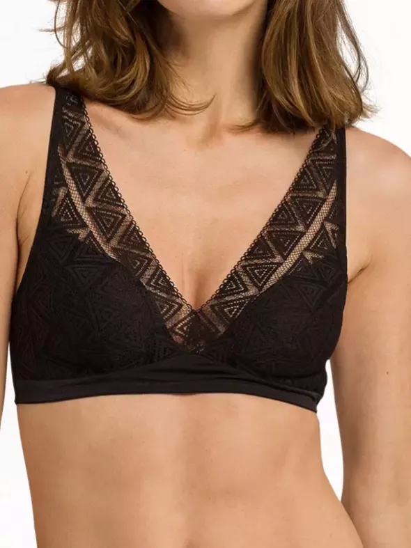 • tiefer V-Ausschnitt mit dominanten Trägern