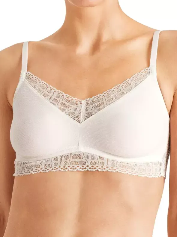 Super feminin ist der neue Soft Cup BH aus der Serie Imani von HANRO. Er ist aus milchig-transparenter Wirkware mit minimalistischem Jacquardmuster aus Frankreich gemacht und verzaubert darüber hinaus mit einer schicken Verzierung aus edler Jacquardtronic-Spitze. Verstellbare Träger sorgen für eine hervorragende Passform, während ultraflache Abschlüsse den romantischen Style vollenden.