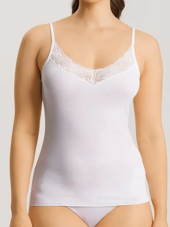 Das feminine Spaghetti-Top aus der HANRO Serie Cotton Delight besticht durch sein Feinripp-Material aus merzerisierter Baumwolle. Die Spitzendetails und die nahtfreie Verarbeitung an Saum und Seiten sorgen für höchsten Tragekomfort. Verstellbare Träger ermöglichen einen individuellen Sitz und machen das Top ideal für den Alltag. Hergestellt aus 100 % Baumwolle aus Österreich, passt es perfekt unter leichte Blusen und Blazer und fühlt sich wunderbar angenehm an.