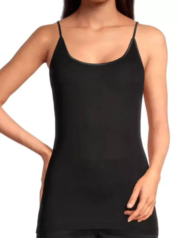 Ein Spaghetti Top, wahlweise in weiß, creme oder schwarz in perfekter Passform, aus der Serie Filoscozia der Luxusmarke Oscalito – Unterwäsche für Damen. Feine, zarte Optik, und schlichte Eleganz vereinen sich zu purem Luxus auf der Haut. Feine langstapelige, ägyptische Mako Baumwolle, verarbeitet zu Single Jersey verleihen dem Kleidungsstück einen weichen Griff. Ein Spaghetti Top mit rundem Ausschnitt und Satineinfass welches höchsten Ansprüchen an Bequemlichkeit gerecht wird.