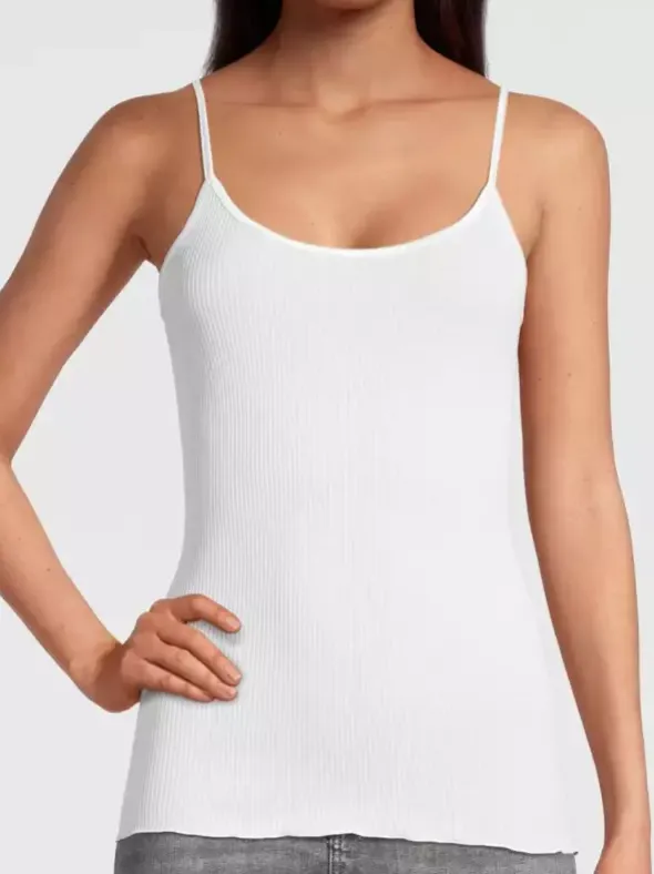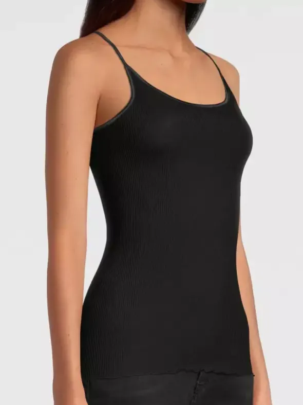 Ein Spaghetti Top, wahlweise in weiß, skin oder schwarz in perfekter Passform, aus der Serie Filoscozia der Luxusmarke Oscalito – Unterwäsche für Damen. Feine, zarte Optik, und schlichte Eleganz vereinen sich zu purem Luxus auf der Haut. Feine langstapelige, ägyptische Mako Baumwolle, verarbeitet zu edler Rippe verleihen dem Kleidungsstück einen weichen Griff. Ein Top mit rundem Ausschnitt und Satineinfass welches höchsten Ansprüchen an Bequemlichkeit gerecht wird.