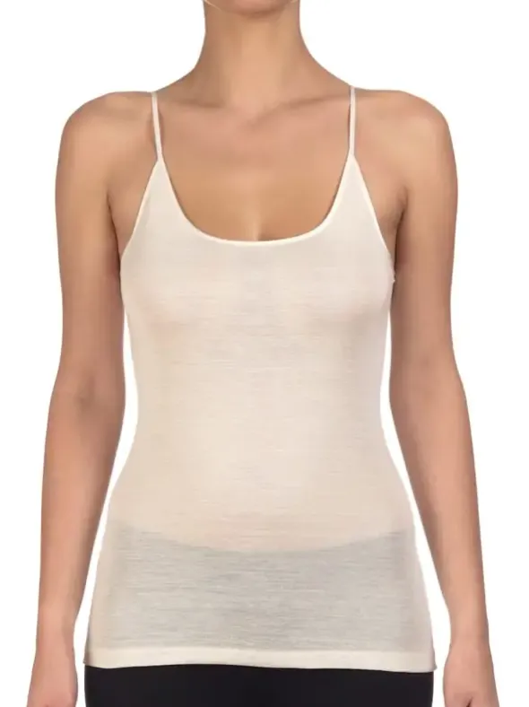 Ein Spaghetti Top, wahlweise in creme oder schwarz in perfekter Passform, aus der Serie Merino Wool der Luxusmarke Oscalito – Unterwäsche für Damen. Feine, zarte Optik, und schlichte Eleganz vereinen sich zu purem Luxus auf der Haut. Feinste Merinowolle, verarbeitet zu einem glatten Gewebe verleiht dem Kleidungsstück einen weichen Griff. Ein Top mit rundem Ausschnitt mit Satineinfass welches höchsten Ansprüchen an Bequemlichkeit gerecht wird.