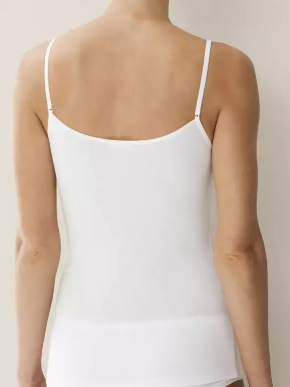 Zimmerli Damen Spaghetti Top aus der Serie 700 Pureness – ein Luxus Top der Extraklasse, wahlweise in weiß, schwarz, skin oder dunkelblau, gefertigt in Single Jersey aus feinster Micro-Modal Qualität – eine ultraleichte Stoffqualität mit hoher Durchlässigkeit und verunreinigungsresistenter Oberfläche. Ultraflache Nähte und sehr angenehmer Bund. Pureness sitzt wie angegossen und fühlt sich an wie eine zweite Haut. Schweizer Handarbeit – akkurat verarbeitet. Verwöhnen Sie sich mit diesem Damentop, das höchsten Ansprüchen gerecht wird.