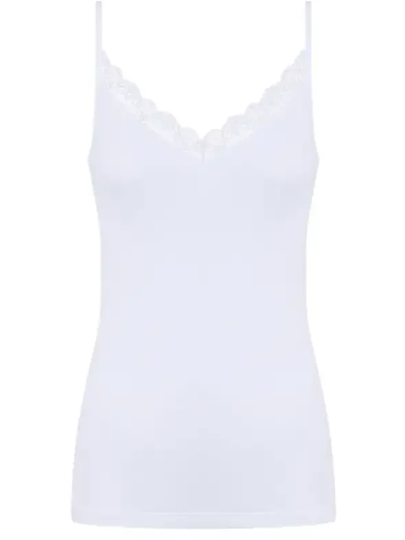 Das Spaghetti-Top aus der Serie Daily Sense präsentiert sich mit einem V-Ausschnitt und einer schmalen Passform für einen eleganten Look. Die Spitzenverzierung am Dekolleté verleiht ihm eine feminine Note, während die verstellbaren Spaghettiträger für eine individuelle Anpassung sorgen. Mit seiner fließenden Qualität und atmungsaktiven Eigenschaften bietet das Top ein angenehmes Tragegefühl. Unser Model trägt Größe S. Dieses Top ist maschinenwaschbar bei 30°C (Feinwäsche) und nicht trocknergeeignet. Der High Stretch des Stoffes fühlt sich wie eine zweite Haut an und sorgt für zusätzlichen Komfort.