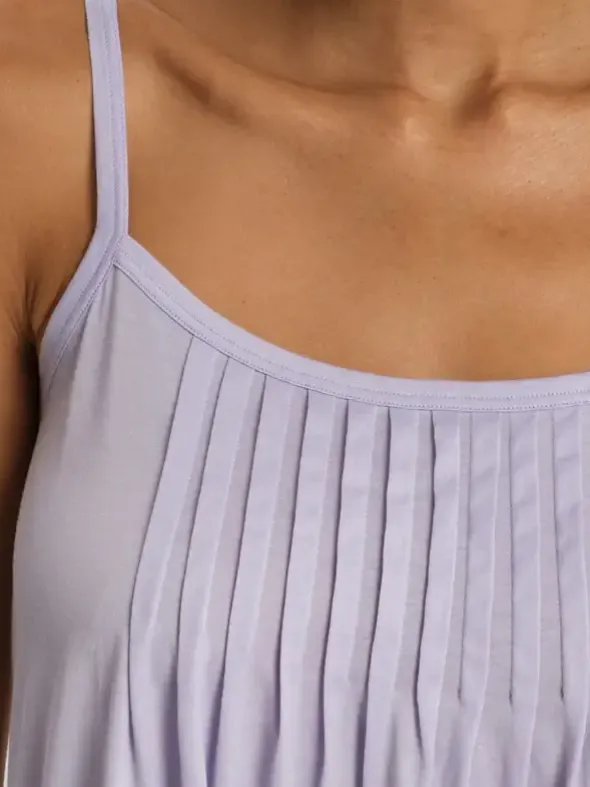 Das Spaghettidress – Juliet aus der HANRO Kollektion besticht durch seine feminine und gleichzeitig bequeme Passform. Hergestellt aus feiner, merzerisierter Baumwolle in Single Jersey-Qualität fühlt sich das Kleid angenehm weich auf der Haut an. Die raffiniert gearbeiteten Biesen am runden Ausschnitt verleihen dem Kleid eine elegante Note. Mit einer Länge von 90 cm und einer leichten A-Linie bietet es sowohl Bewegungsfreiheit als auch einen schmeichelhaften Look. Ein idealer Begleiter für entspannte Tage zu Hause oder auf Reisen.