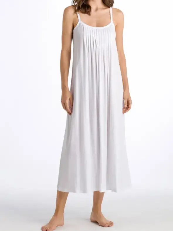 Luftig sommerliches Damen Spaghetti Kleid aus der HANRO Fashion-Serie Juliet. Die fein gearbeiteten Biesen ergeben einen wunderbar luftigen Faltenwurf. Angenehm weicher Single-Jersey aus reiner mercerisierter Baumwolle sorgt für einen unkomplizierten Tragekomfort. Das zarte Spaghettidress hat eine Länge von 130cm.