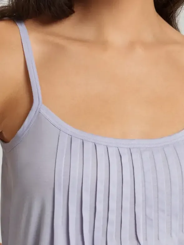 Das Spaghettidress – Juliet aus der HANRO Kollektion ist der perfekte Mix aus Eleganz und Komfort. Hergestellt aus 100 % merzerisierter Baumwolle in Single Jersey-Qualität, fühlt sich das Kleid wunderbar weich und angenehm auf der Haut an. Die raffiniert gearbeiteten Biesen am Ausschnitt verleihen dem Kleid eine zusätzliche elegante Note, während die knöchelumspielende Länge einen femininen und gleichzeitig bequemen Look schafft. Dieses bezaubernde Spaghettidress eignet sich hervorragend für sommerliche Anlässe, entspannte Tage zu Hause oder auch für den Urlaub.