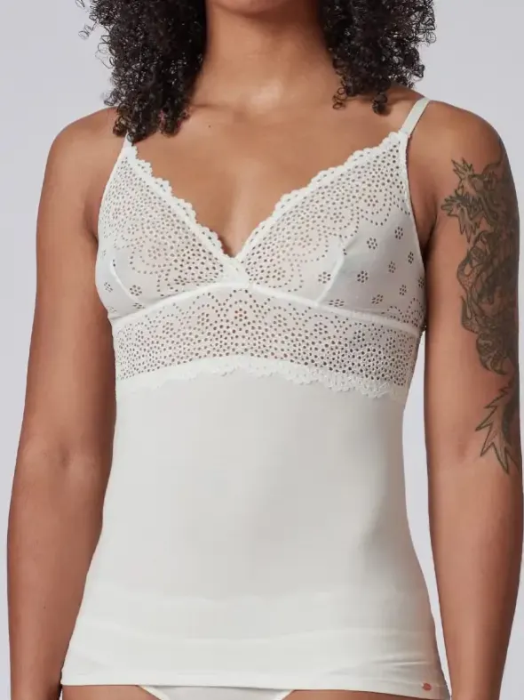 Wie eine zweite Haut sitzt das Damentop mit Spaghettiträgern von Skiny. Gefertigt aus einer super soften Bambusviskose und einem Spitzenbesatz aus recycelten Fasern wird dieses zeitlose Wäschestück schnell zum geliebten Basic im Kleiderschrank. Verstellbare Träger lassen sich für jede Größe variieren, die ungefütterten Cups passen sich dank formgebenden Nähten wunderbar der natürlichen und individuellen Brustform an.