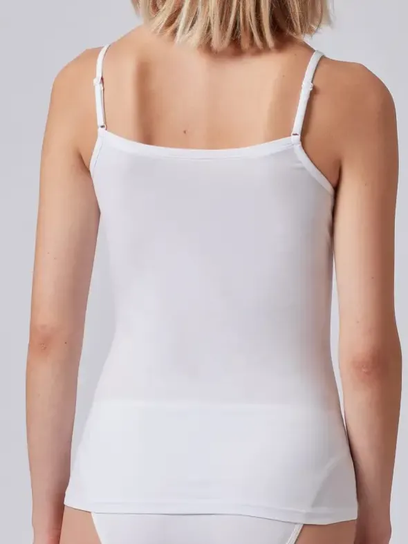 Vielseitiges Damen-Top aus weicher und anschmiegsamer Baumwolle und einem Hauch Elasthan. Der coole Style mit Rundhalsausschnitt und körpernaher Passform eignet sich sowohl als Freizeitlook kombiniert zu Jeans oder auch als Unterhemd wunderbar. Verstellbare Träger lassen sich individuell an jede Größe anpassen. Die flache Verarbeitung der Nähte sorgt für zusätzlichen Komfort.